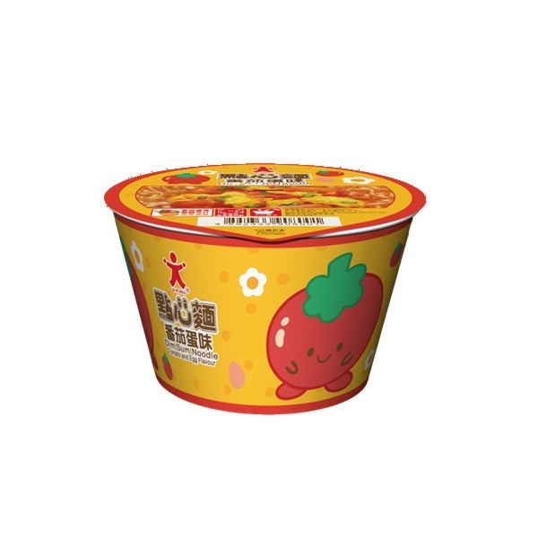 公仔點心麵「番茄蛋味」以清新酸甜的番茄味道配合濃郁蛋香,香氣突出,酸甜度恰到好處,加上軟滑的麵條,呈現色香味俱全的家常風味。只需加入熱水,等約2分鐘,即可輕鬆滿足早餐與下午茶。